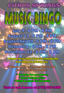 6 PM – 8 PM Second Wednesday of each month (July – November) Citrus Springs Clubhouse